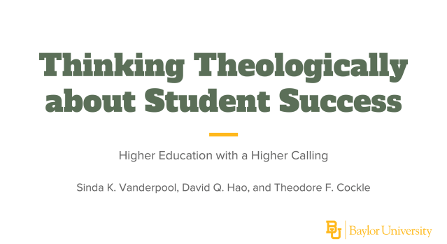Thinking Theologically About Student Success: Higher Education with a Higher Calling November 30, 2022